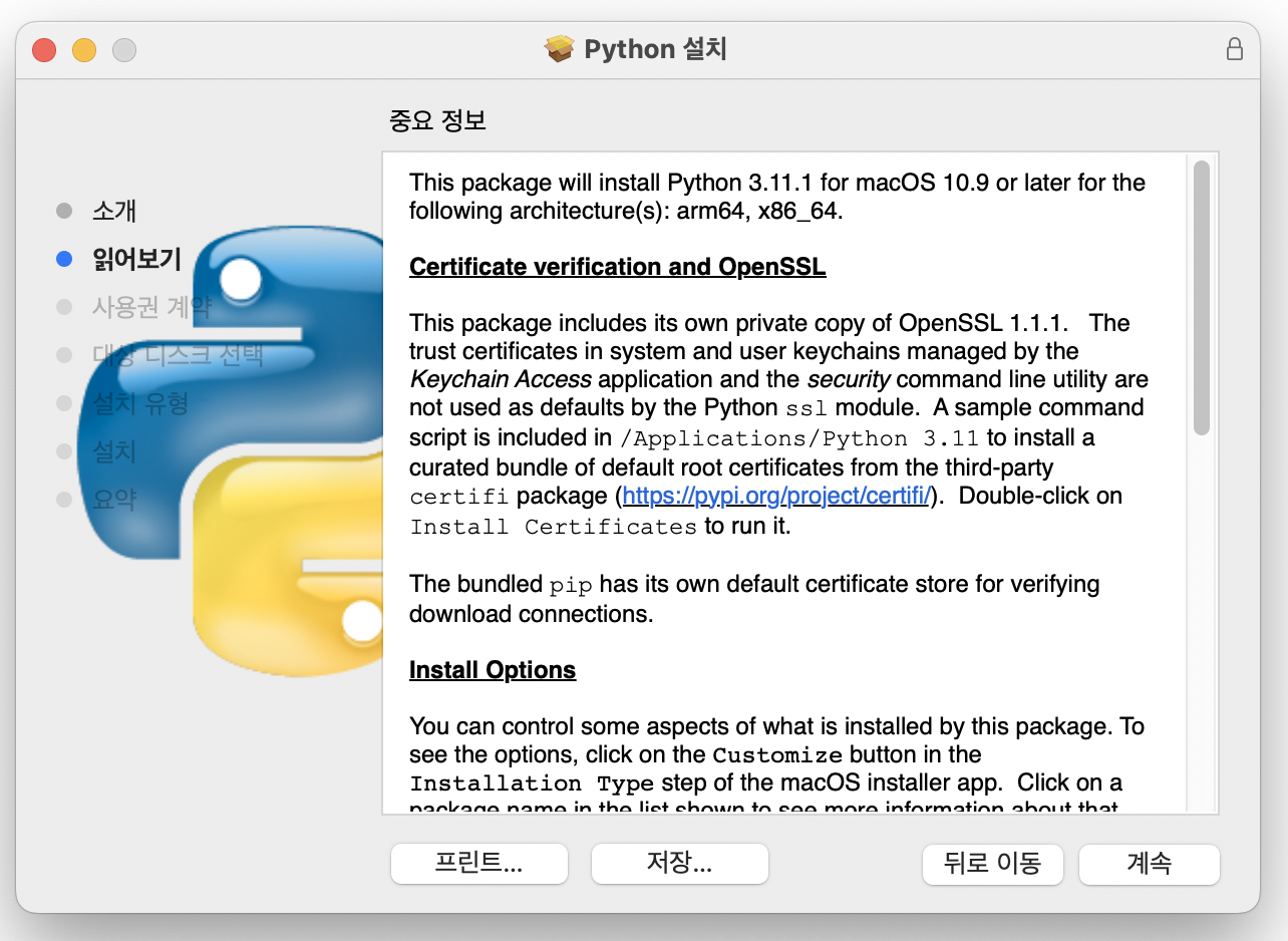 대략 내용은 내 컴퓨터에 파이썬을 정식 인증서와 함께 설치하고, 어떤 옵션으로 설치를 할 것이고, 보안은 어떻게 이루어지는 지 등의 설명이 대략적으로 담겨 있다.