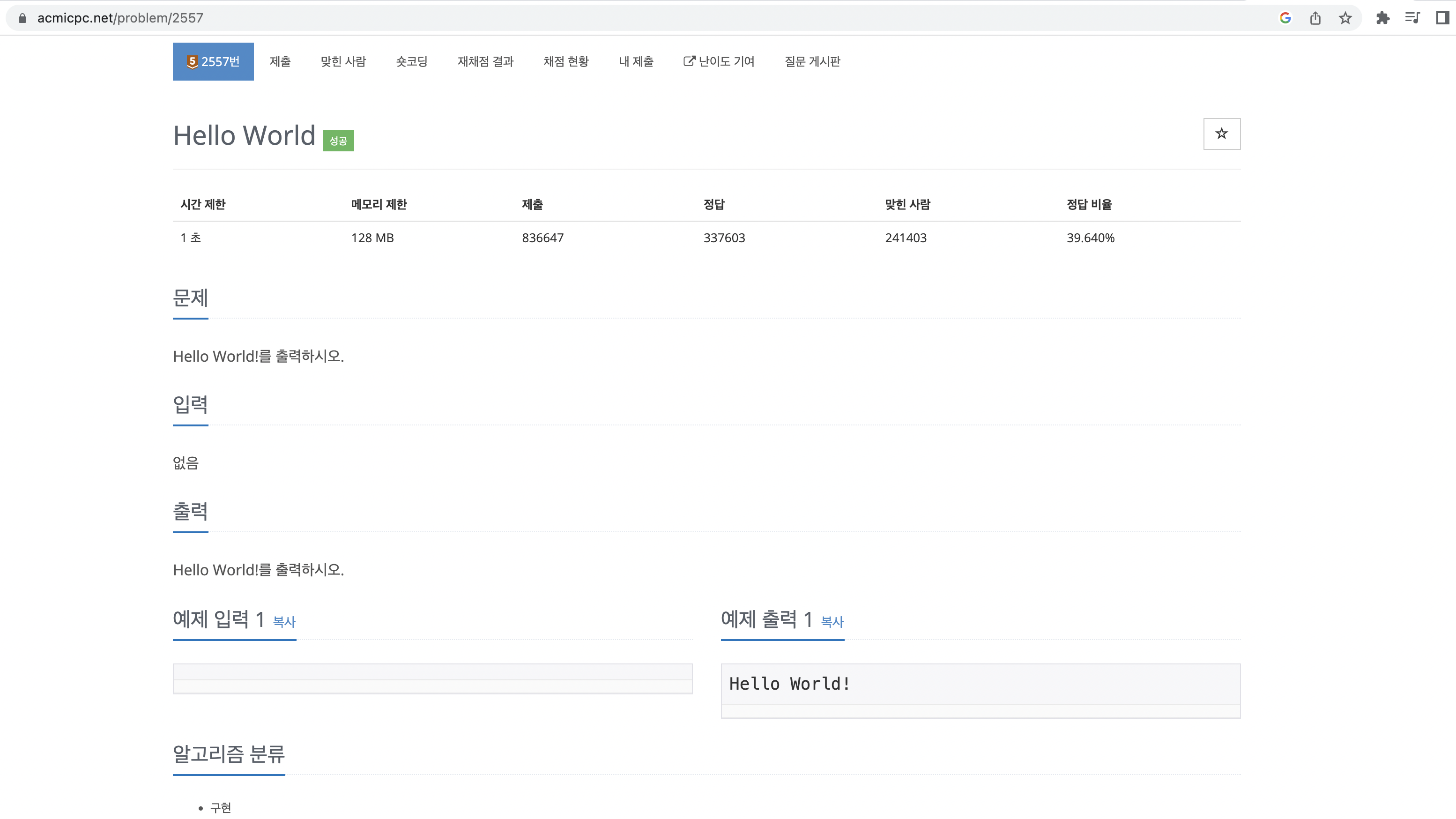 문제에서 Hello World!를 출력하라고 했으니, 이를 출력하기 위해 코드를 작성하자.
