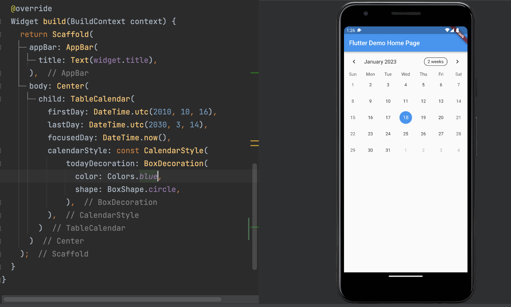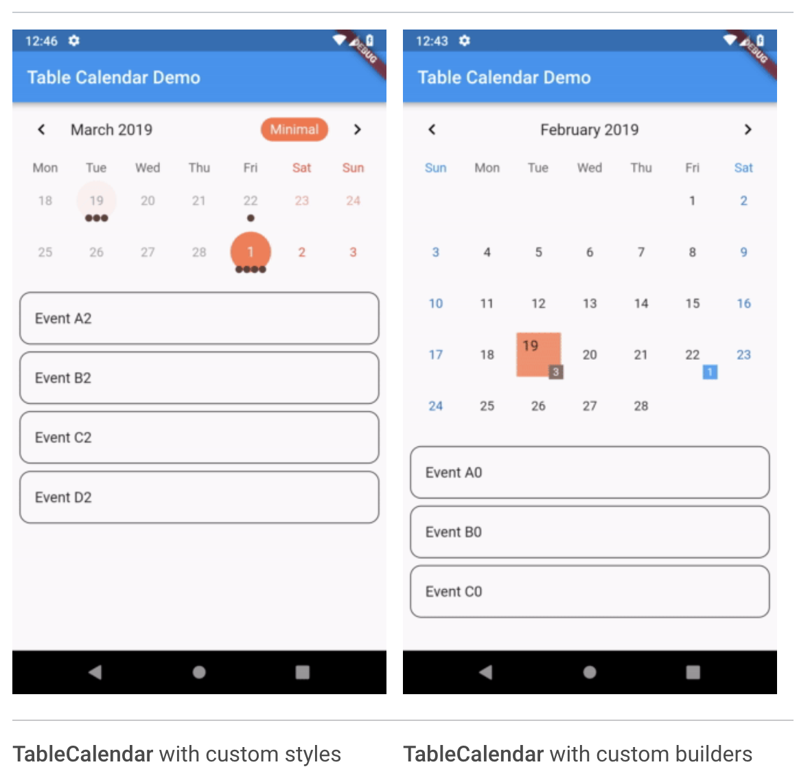 테이블 캘린더 구성 요소에 calendarStyle 구성 요소를 변경하여 이를 표시하는 것이 가능하다.