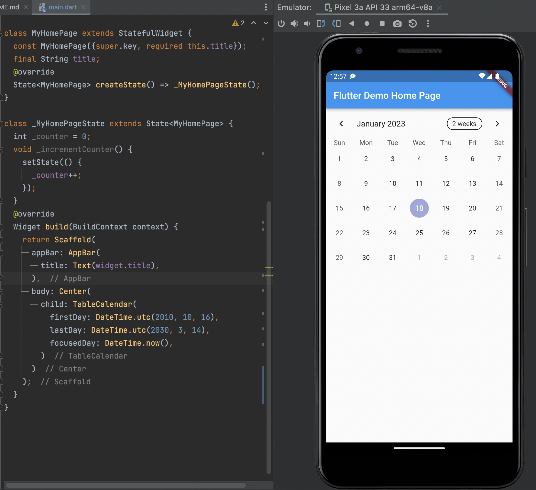 flutter pub add table_calendar